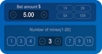 Coloque sua aposta e selecione o número de minas que pretende no tabuleiro de jogo. Quanto mais minas, maiores são os seus ganhos.
