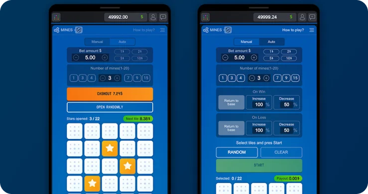 Aproveite da excelente funcionalidade de cash out para gerir a sua banca! Retire o lucro antes de detonar uma mina e o dinheiro é seu.